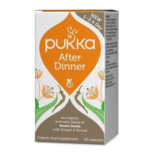 Pukka After Dinner kapsler Ø – 60 kap Pukka After Dinner kapsler er et økologisk og aromatisk kosttilskud med en blanding af syv plantefrø med ingefær og fennikel. Anvendelse Indtag 1-2 kapsler dagligt før et måltid og sammen med noget at drikke. Den anbe (Læs mere)