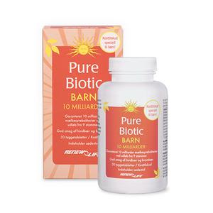 Renew Life Pure Biotic består af velsmagende tyggetabletter til børn med masser af gavnlige mælkesyrebakterier.En tablet af Pure Biotic indeholder et bredt spektrum af 10 milliarder gavnlige mælkesyrebakterier (fordelt på 9 stammer) i høj koncentration. T (Læs mere)